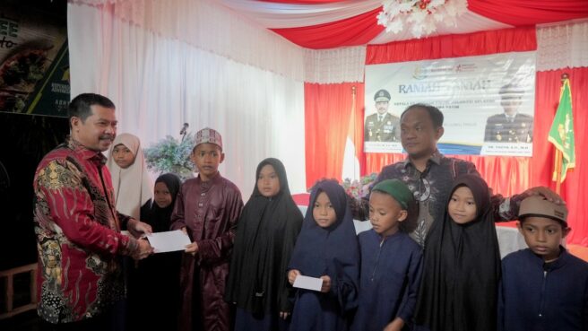Kajati Sulsel Agus Salim memberikan pesan kepada para anak yatim piatu untuk selalu optimis, semangat, rajin belajar, dan senantiasa berdoa kepada Tuhan Yang Maha Esa.