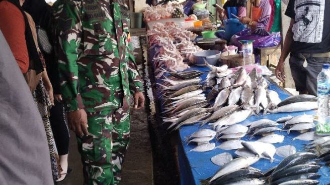 SIDRAP.FRONTSULSEL.COM – Babinsa Desa Bila, Serma Abd. Haris, dari Koramil 1420-05/Dua Pitue, aktif memantau harga dan ketersediaan bahan pokok di Pasar Rakyat Bila, Kecamatan Dua Pitue, Kabupaten Sidrap. Pemantauan yang dilakukan pada Sabtu (24/5/2025) ini bertujuan untuk menjaga stabilitas harga dan memastikan ketersediaan bahan pokok bagi masyarakat.
