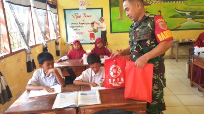 SIDRAP – Komando Distrik Militer (Kodim) 1420/Sidrap melalui jajaran Bintara Pembina Desa (Babinsa) Koramil setempat secara aktif melakukan pendampingan pendistribusian program Makan Bergizi Gratis bagi peserta didik dan masyarakat non-peserta didik di wilayah Kabupaten Sidrap, Kamis (05/03/2026).